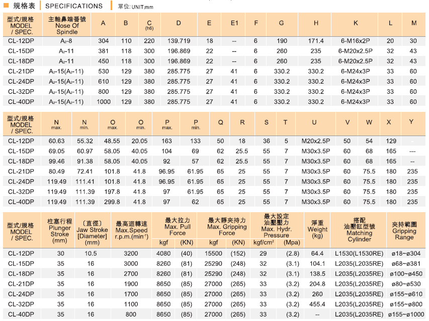 • Wide variety of world standard chuck, high gripping force & stability suit to specific needs