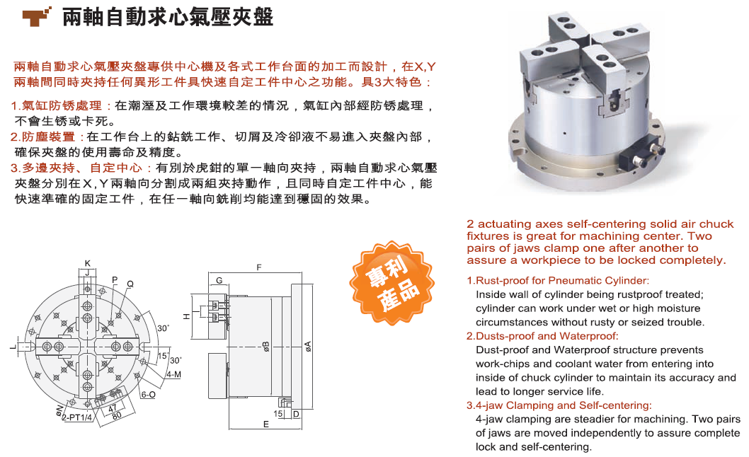 • Wide variety of world standard chuck, high gripping force & stability suit to specific needs