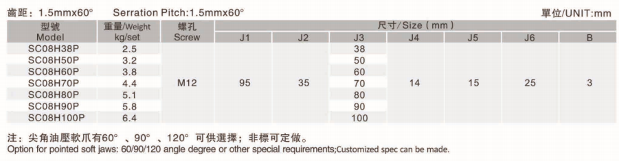 SC08 8 Inch 60,90,120 degree Standard Soft Jaws for Hydraulic Chuck