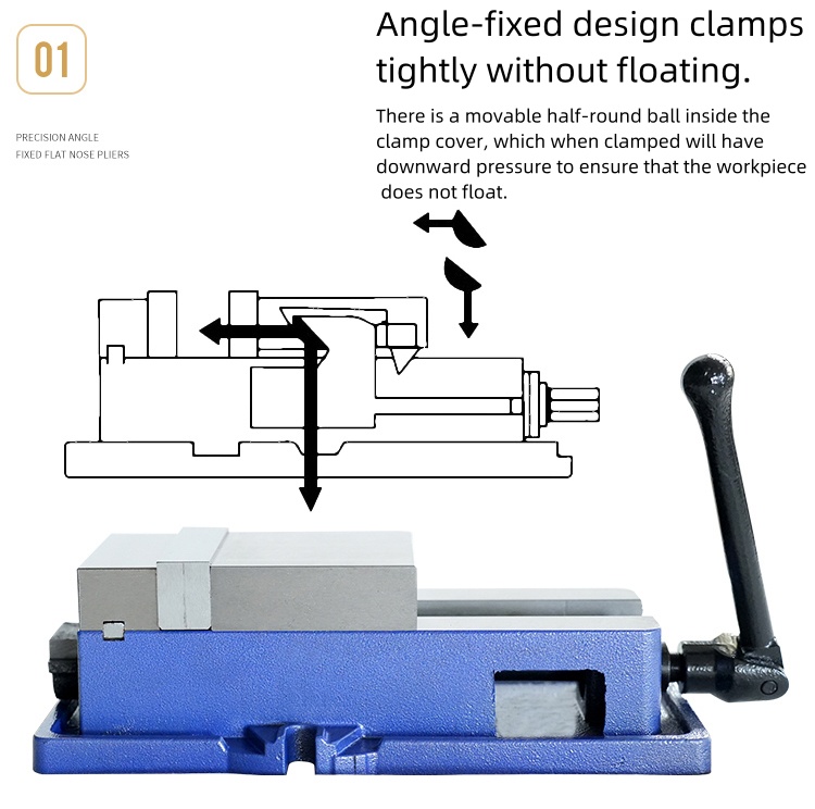 Strong clamping force: the vise can provide a large clamping force to ensure that the workpiece is stable and does not move during the machining process.