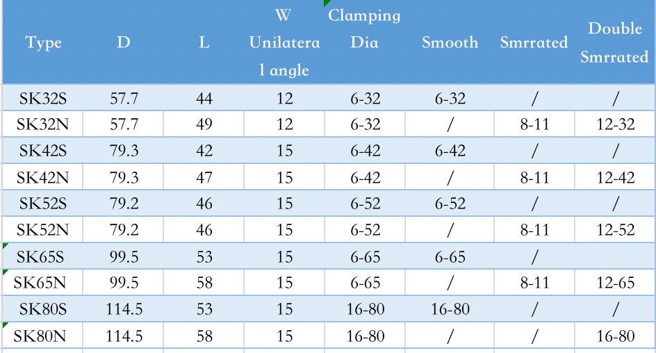 The collet hardness,copious cooled, is HRC58-60. The rotating run-out accuracy is leas than 10μ,and the calmping range is 土0.5mm.